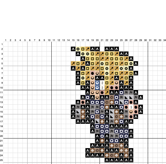 That pattern includes a PDF with coloured symbols. Original was done on 14-count white Aida cloth.